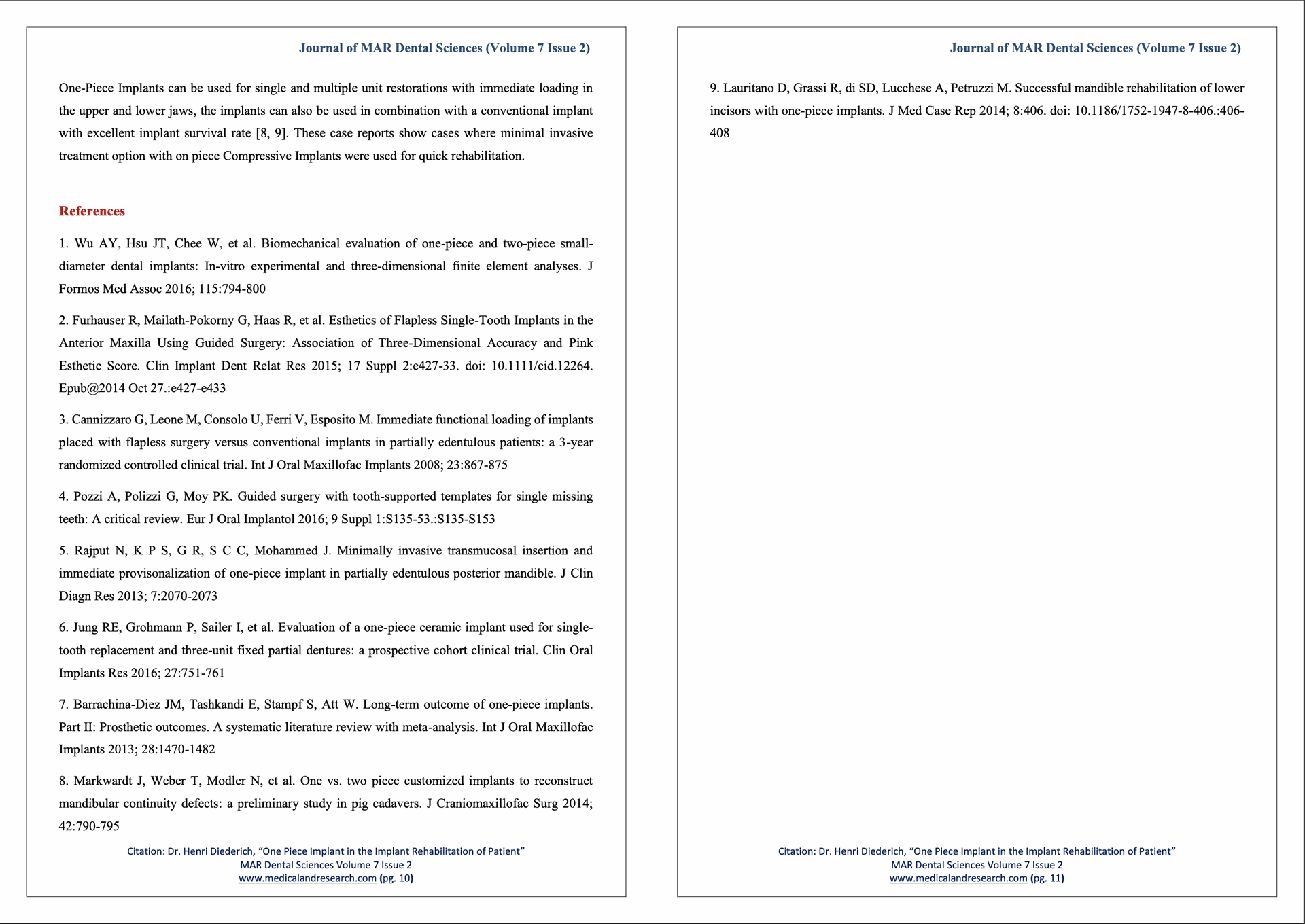 El trabajo presenta el uso de implantes monobloque (One-Piece) en la rehabilitación de pacientes. Estos implantes, hechos de titanio grado 5 con superficie HA/BTCP, integran en una sola pieza el implante y la supraestructura, lo que permite un procedimiento rápido, mínimamente invasivo y, en muchos casos, con carga inmediata.
